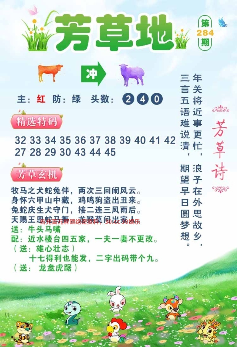 286期芳草玄机:二九结伙向东走,三七成群上青天。一人得道鸡犬升,万户诸侯一门红。山水如画醉人意,进入其中意难离。花香鸟语世外居,隔三差五来想起。 芳草诗:四零当选一定红,二顺一来三相求。畏长耳朵穿白衣,三春杨柳四五番。 传奇特肖:兔马龙鸡蛇猴羊 发财波色:红蓝 |